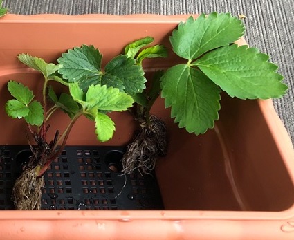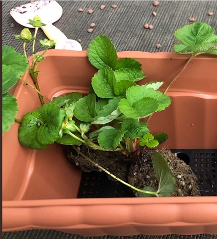いちごは多年草で一度栽培を始めるとずっと敷地を占拠してしまうので、ベランダの手すりにハンギングすることにしました。