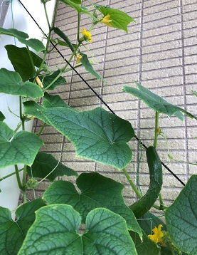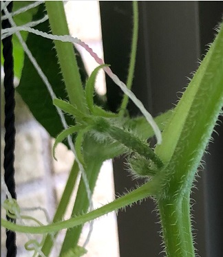 雌花の開花が始まりました。でもこの時期に咲いたものは暑すぎたのか着果せず。
