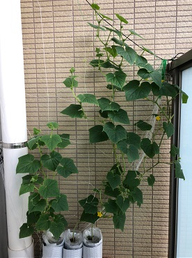 エアーポンプなしペットボトル水耕栽培でダイソーのきゅうり(ときわ地這)を吊ってちゃんと収穫出来ました!まだ育てている途中なので、最終的に3株から何本取れたかは1か月後くらいにご報告出来たらいいなと思います!