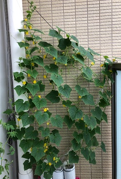 とても綺麗だけど花殻がベランダを汚すので、このころから雄花は開花前に毟るように。