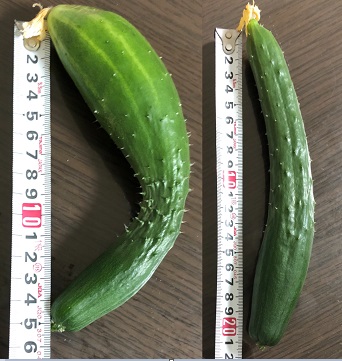 一番果は15㎝で種あり(人工授粉)、二番果実は21㎝で種なしでした!