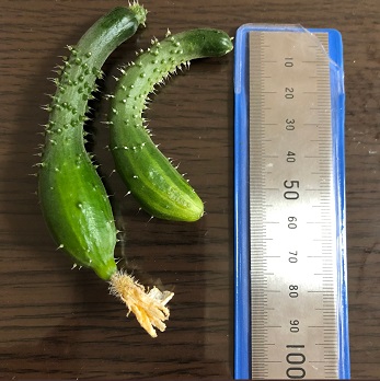 本日2本収穫。累計8本。種ありの方が下ぶくれ。
