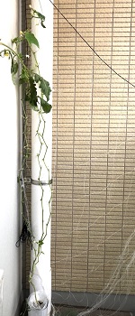 下の方の節から出た子づるは雌花が咲いても大きくならないから、来年は脇芽かきしようと思います。