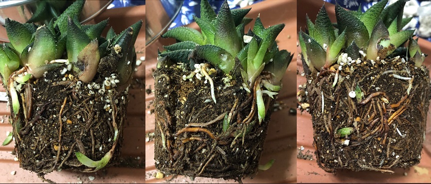カオス。ハオルチアの中では珍しく、ランナーで増える品種だそうですが、それにしても子株が鉢の中に多すぎるwww